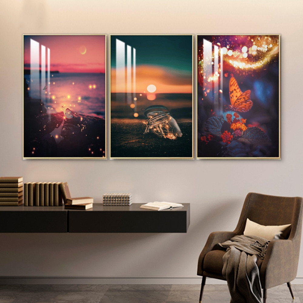 ثلاث لوحات جدارية مع برواز واكريلك شفاف