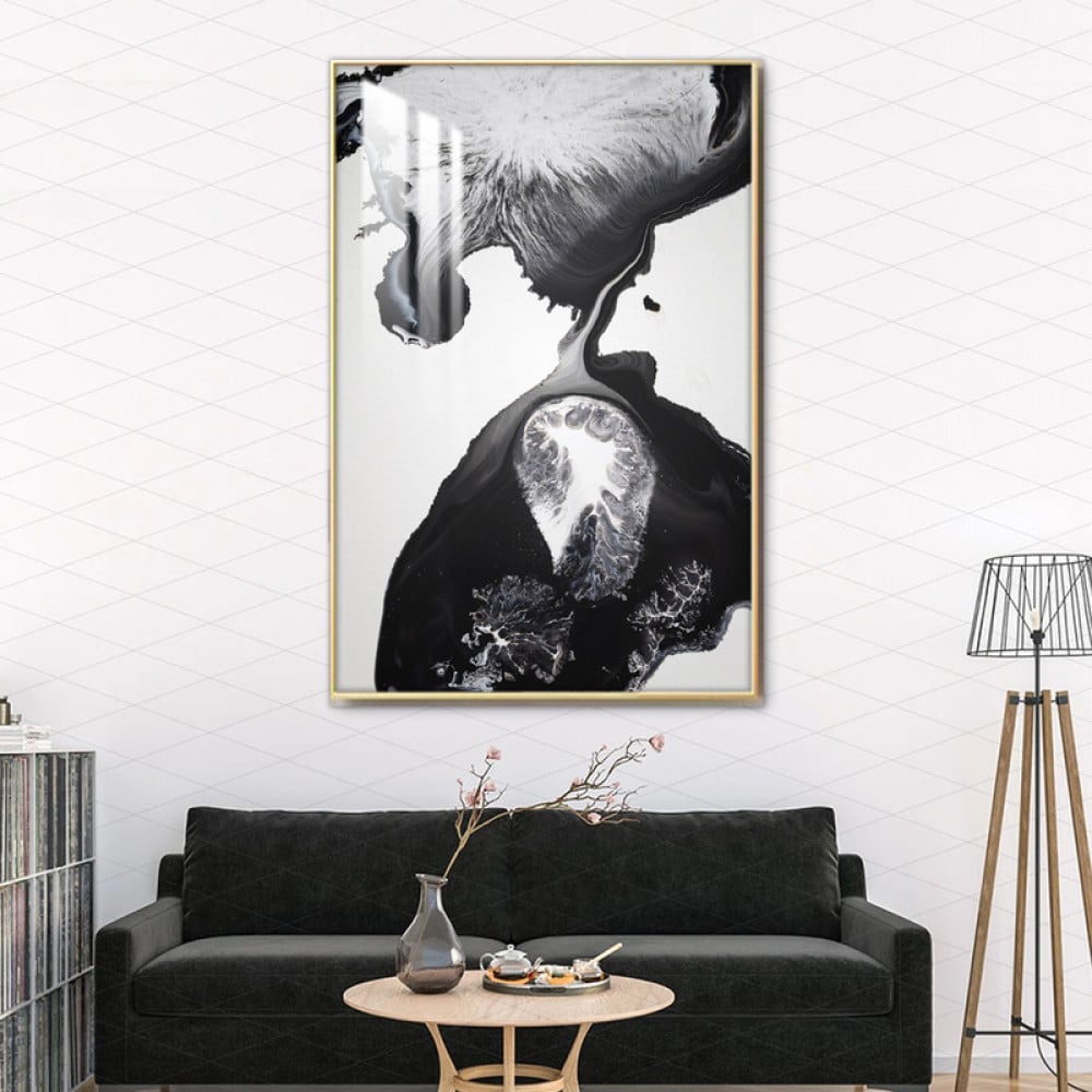 • لوحات جدارية مشدودة على إطار خارجي فخم (برواز) و طبقة من الزجاج