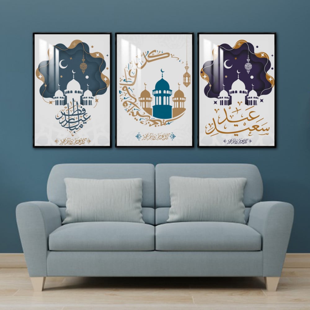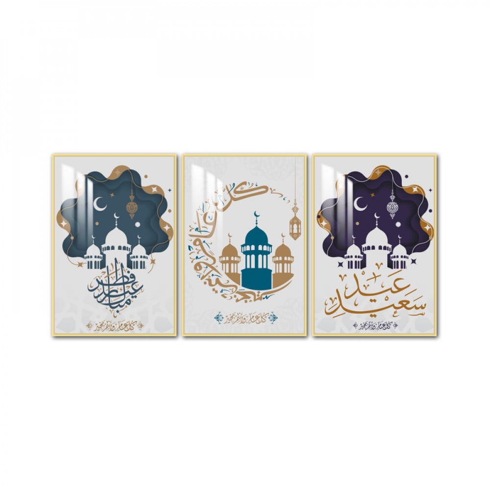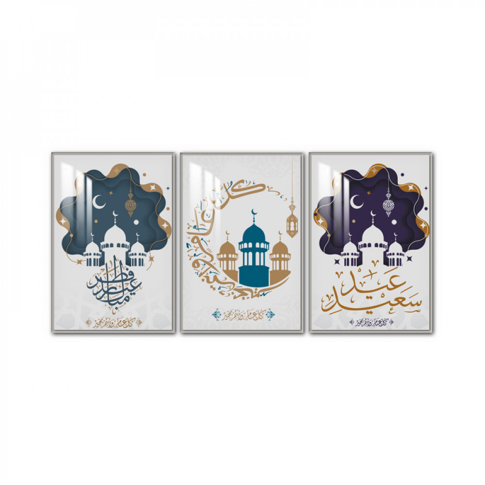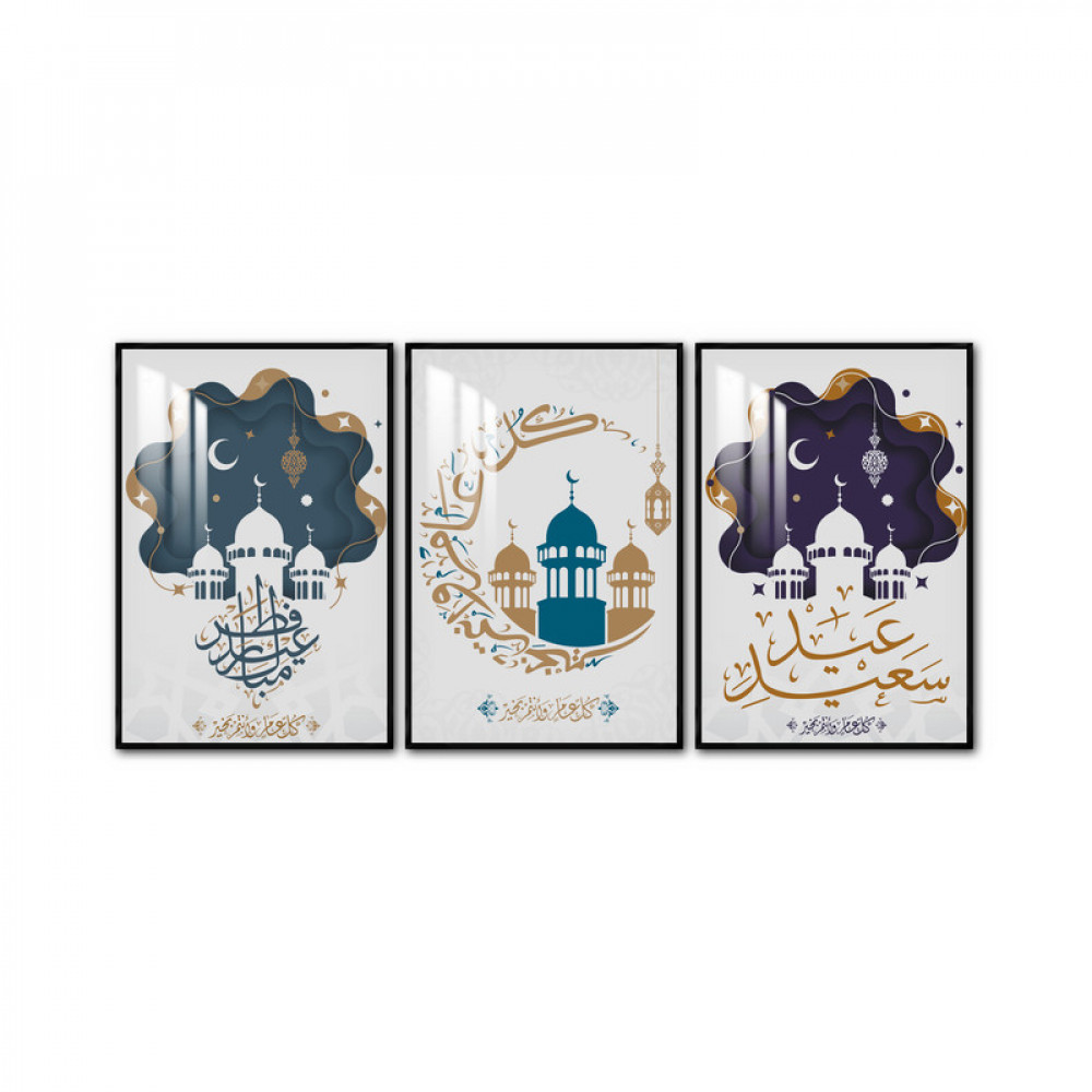 • ثلاث لوحات خشبية مع اطار واكرليك شفاف شبيه بالزجاج