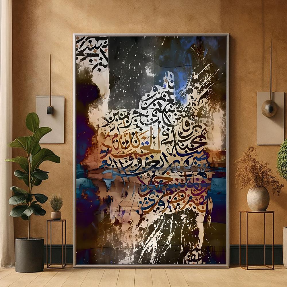 لوحة قماشية بتصميم الخط العربي مع برواز مجوف