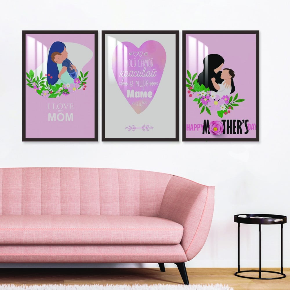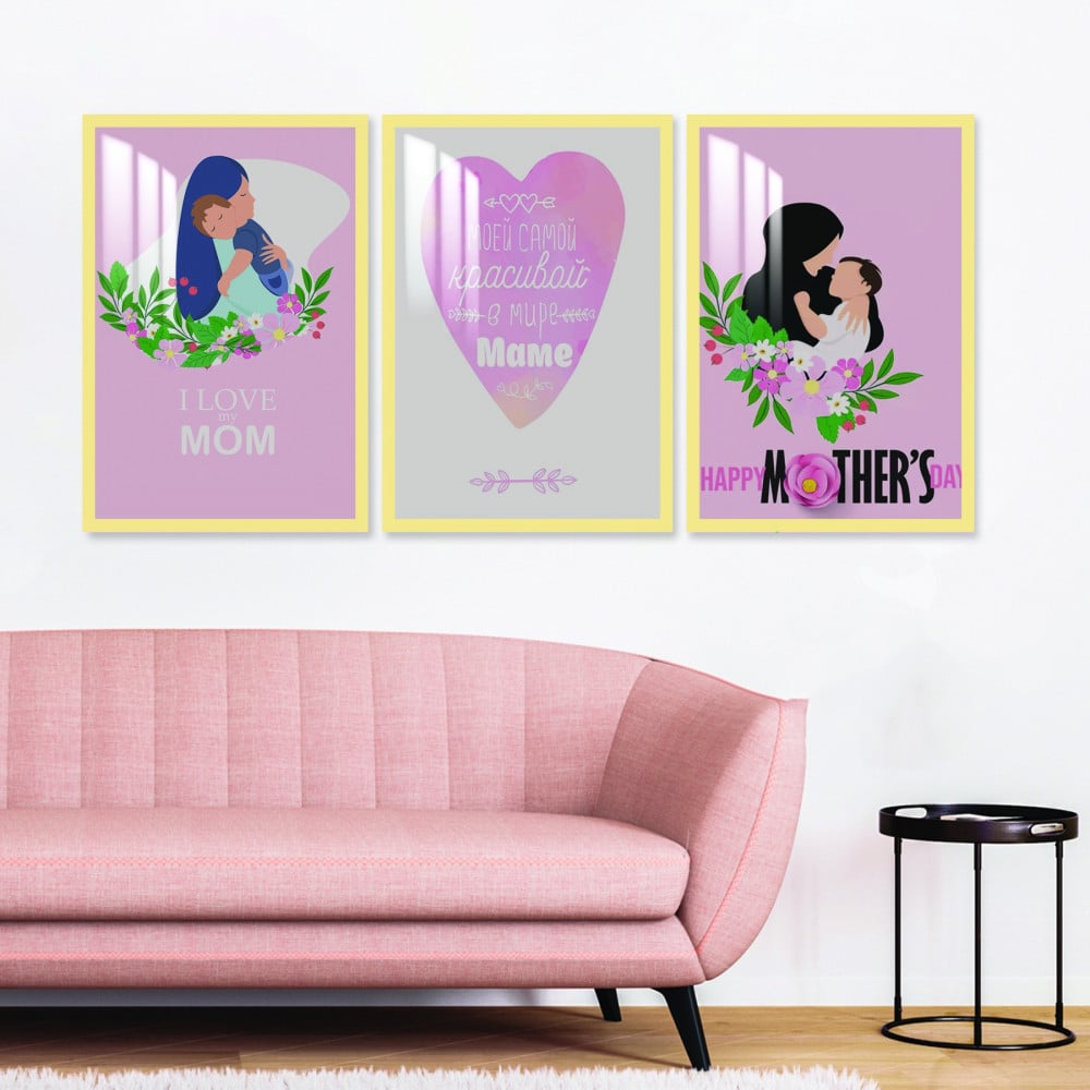 • ثلاث لوحات خشبية مع اطار واكرليك شفاف شبيه بالزجاج