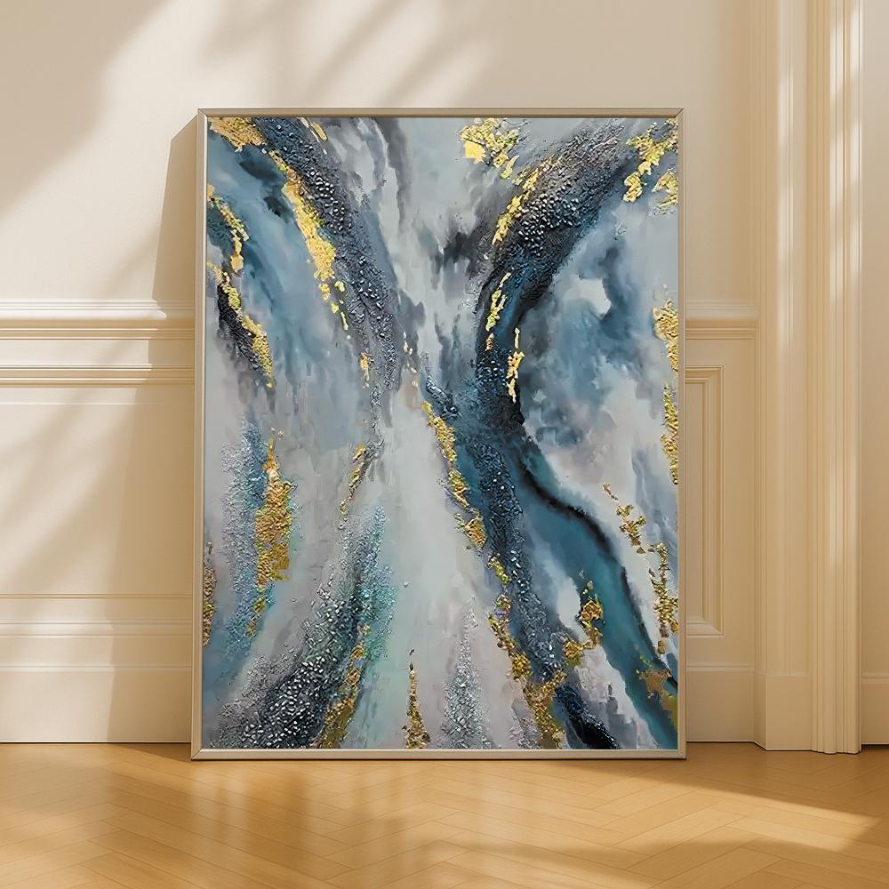 لوحة قماشية تجريدية مودرن - بتصميم رخامي - مع برواز مجوف