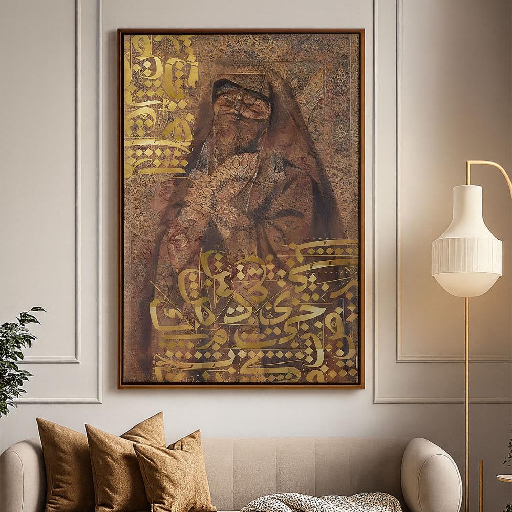 لوحة قماشية بتصميم الخط العربي مع برواز مجوف