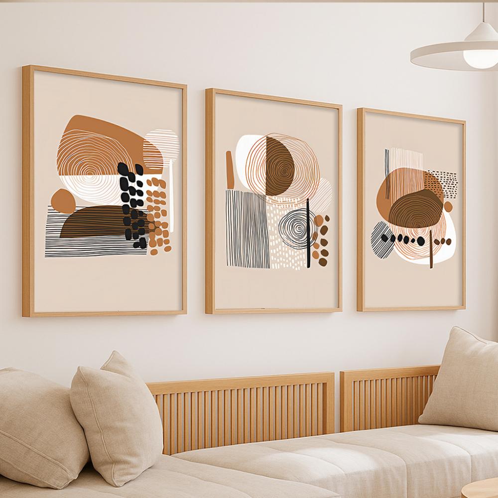 طقم لوحات قماشية ثلاثية مودرن بتصميم فن تجريدي يضفي الفخامة لديكور منزلك أو مكتبك: